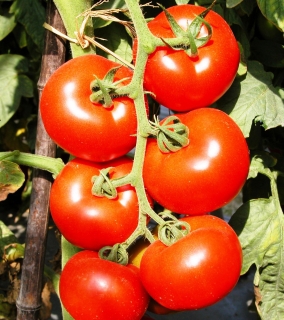 產品介紹: 品種特性: 強抗黃化捲葉毒素病(TYLCV)、抗細菌性斑點病。 植株長勢強健,耐熱性佳,適合露天栽培。 抗裂性強,硬度高,果實轉色佳,色澤鮮紅有光澤,著果穩定,果實大,平均果重約250~300公克。 推薦種植期: 平地:國曆8月上旬至9月下旬。 山區:國曆3月至5月。 牛蕃茄